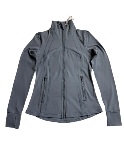 A sleek, sculpting two-piece in a cool slate tone—featuring a fitted zip jacket and extended-length skinny leggings for a smooth, polished athleisure look. Built for workouts, travel, and everyday wear.